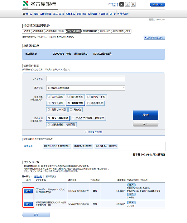 投信積立の申込みを行います。