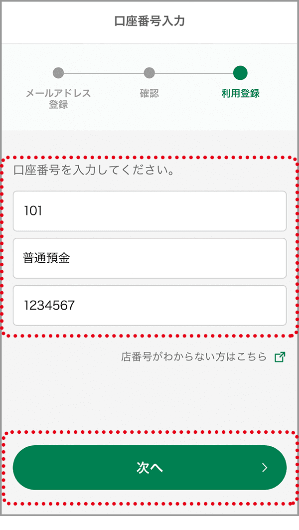 登録にあたっては、お客さまのメールアドレス、口座情報(店番号・口座番号)、キャッシュカードの暗証番号が必要になります。
